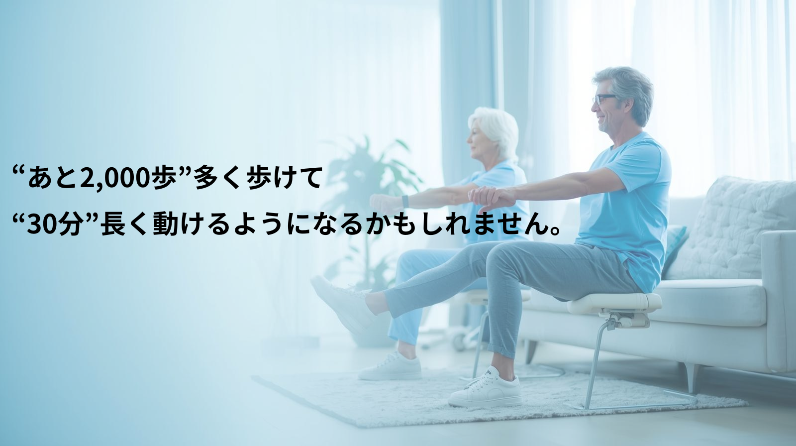 筋トレを続けるだけで、“あと2,000歩”多く歩けて、“あと30分”長く動けるようになるかもしれません。