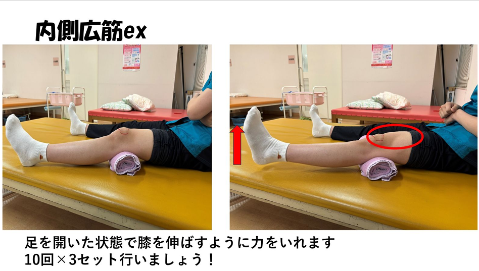 今回は、筋トレ編を紹介しました。関節の曲げ伸ばしや歩く練習も必要ですが、良い術後の経過をたどるには筋トレも大切です。